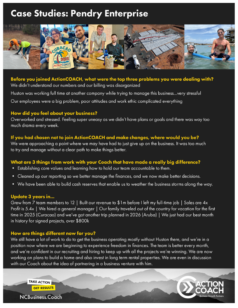 See how ActionCOACH Business Growth Partners helps owners build stronger teams, cleaner numbers, better systems, and businesses that can grow with less dependence on the owner.